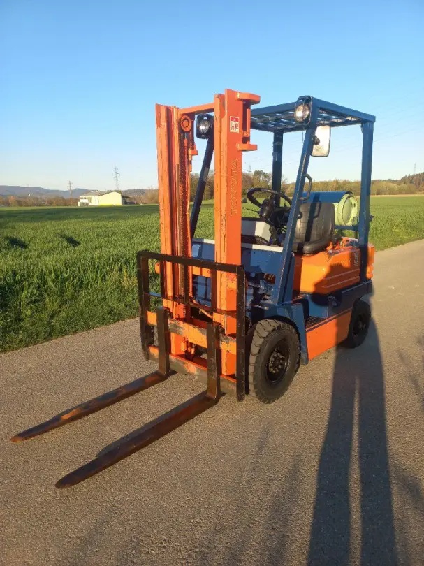 Hubstapler Toyota 5 FG14, 1,4 T Hubkraft, Treibgasstapler, mit erst 4500 Betriebsstunden, Duplexmast mit Lastschutzgitter und langen Gabeln 1,2m, Hubhöhe 3,0 m, Bauhöhe ca. 205 cm, Schaltgetriebe, Servolenkung, Startet / läuft und fährt sehr gut, Bremsen / Handbremse sind sehr gut .... Stapler ist Hinten neu + Vorne80% mit Luft - Bereifung ausgestattet .... sehr guter Zustand, ab Instandstellung und Motorenservice ....